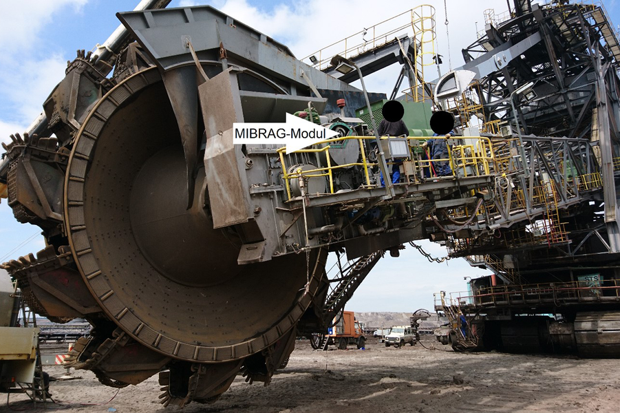 Die Mitteldeutsche Braunkohlengesellschaft mbH (MIBRAG) betreibt im Süden Leipzigs mehrere Tagebaue mit unterschiedlichen Schaufelradbaggern. Angetrieben werden diese Stahlkolosse von leistungsstarken Motoren, die ihre Kraft mittels mehrstufiger Getriebe übersetzen. Speziell die Wälzlager der Planetenstufe darin waren bisher nur schwer zu diagnostizieren, weshalb in Kooperation die MIBRAG-Module entwickelt wurden und stetig weiterentwickelt werden. Sie bestehen grundsätzlich aus mehrachsigen Beschleunigungssensoren, einem Mikrokontroller, einem Speicherchip, einem Funk-Chip mit zugehöriger Antenne und einer Batterie. All dies muss in eine hohle Schraube aus dem 3D-Drucker passen und kann über zwei Jahre eine dauerhafte, zuverlässige Schwingungsmessung ermöglichen, die für die Getriebediagnose eingesetzt wird.